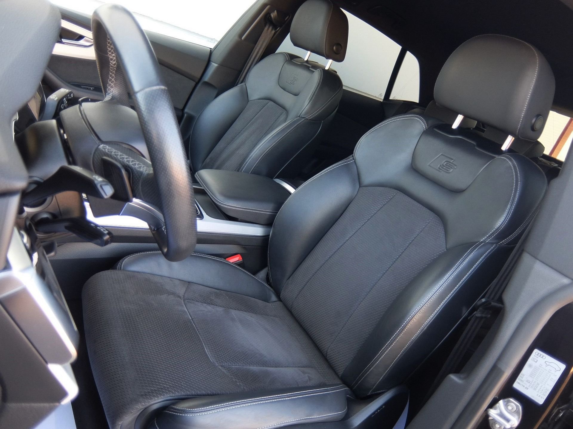 -PIEL negra ALTA CALIDAD + ALCANTARA micro-perforada + Costuras de contraste blancas + emblema "S-LINE"